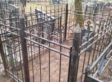 Далее демонтируем все с территории могилы и выпрямляем ограду. Для этого потребовалось полностью откопать две задние ножки, выпрямить ограду и заново залить цементом.